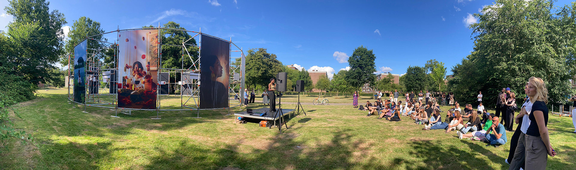The poetry and photographs were exhibited at Waterlandplein in Amsterdam Noord, later on digital screens across the city of Amsterdam, and culminating in a final exhibition during Museumnacht at the Van Gogh museum. In each exhibition, a QR code was included to the Common Culture podcast where we recorded our poems and discussed the inspiration behind them.