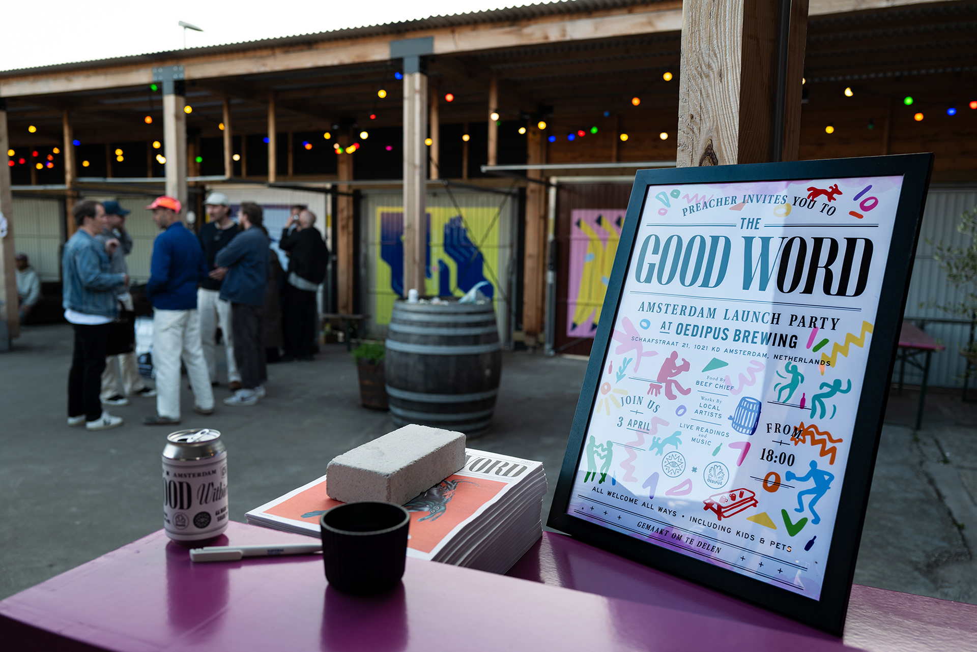 Based in Austin, Preacher agency curates and publishes a yearly edition of The Good Word magazine to hand out for free at SXSW festival, featuring artworks from illustrators, designers, painters, poets and photographers. Since the founder moved to Amsterdam, they decided to publish an additional Dutch edition showcasing local artists from the Netherlands creative scene. Following their iconic church-inspired branding, the agency approaches art, design and branding with an almost religious dedication, including various beautifully designed branded objects to support the magazine launch. The event was exhibited at Oedipus Brewery, featuring an art exhibition, poetry & music performances and their own Preacher beer.